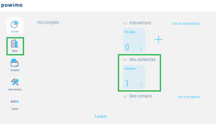 • Prospection: consultation de la recherche en cours et des biens retenus