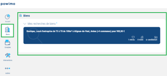• Consulter les biens qu'il a retenu